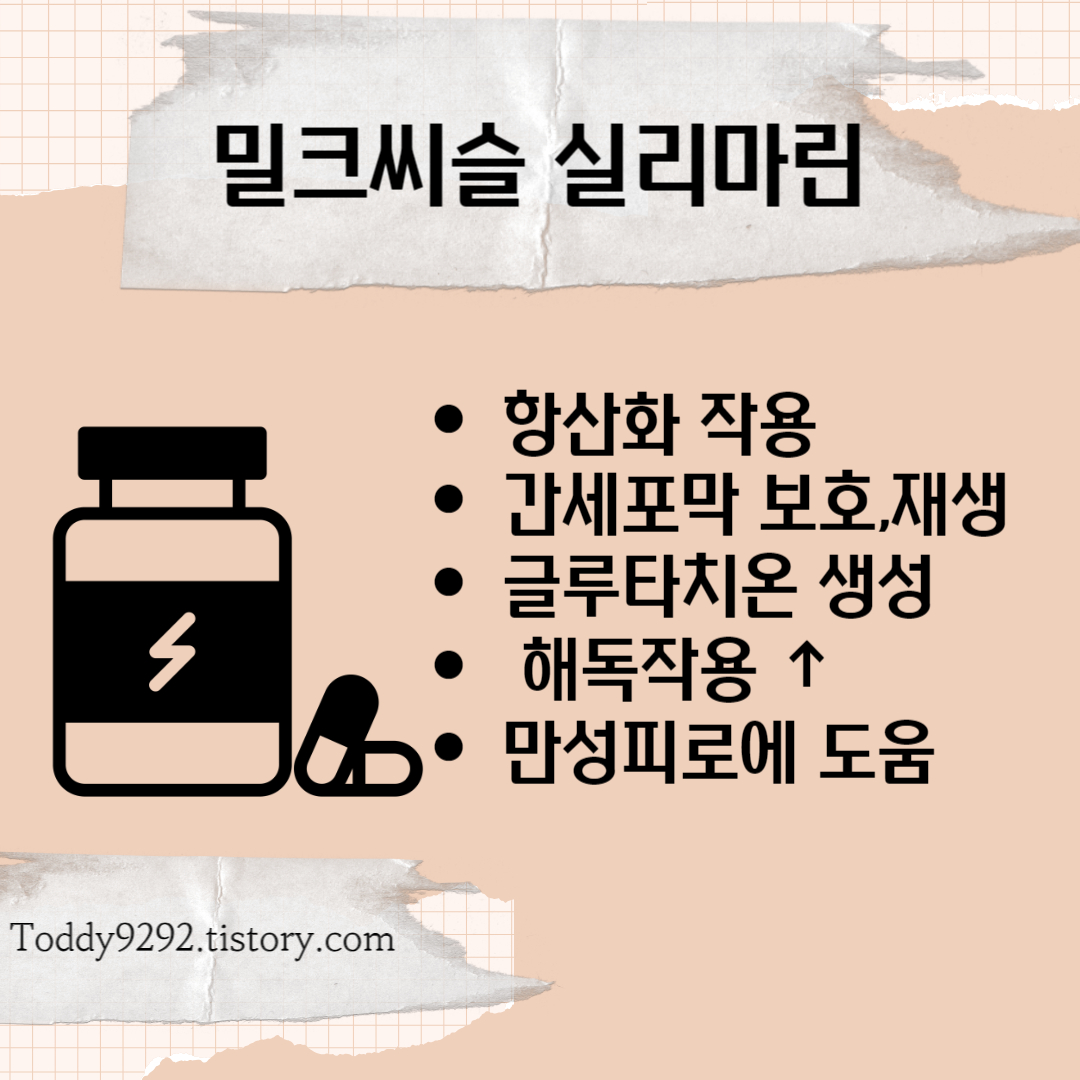 밀크씨슬은 엉겅퀴과 식물 중 하나로 실리마린이라는 성분이 다량 함유되어 있습니다.