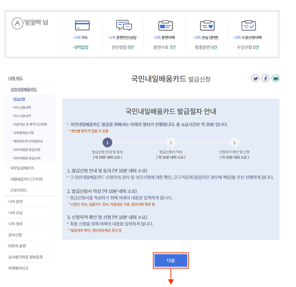 3. 국민내일배움카드 발급 신청