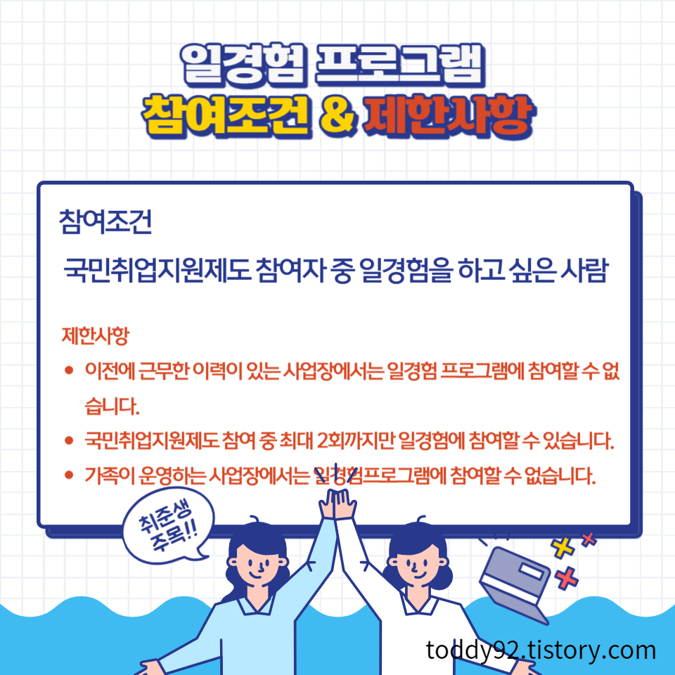 - 가족이 운영하는 사업장에서는 일경험프로그램에 참여할 수 없습니다.