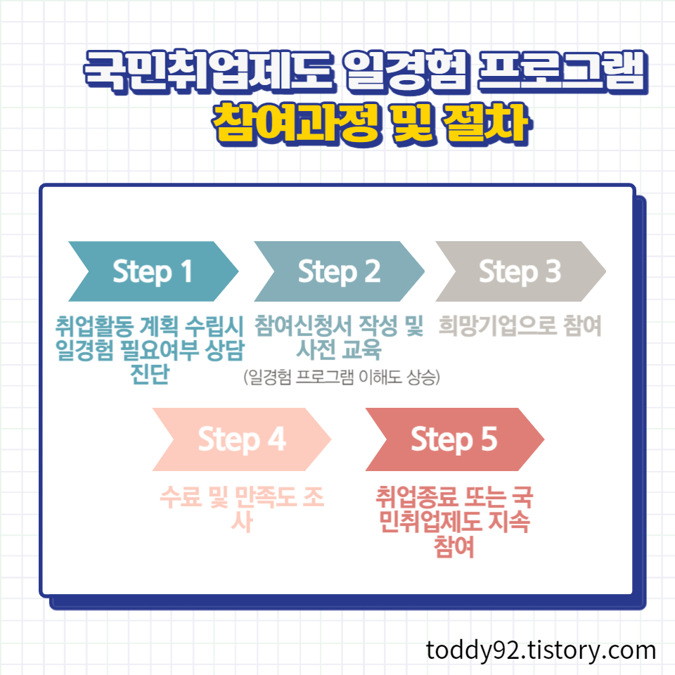 - 국민취업지원제도 참여 중 최대 2회까지만 일경험에 참여할 수 있습니다.
