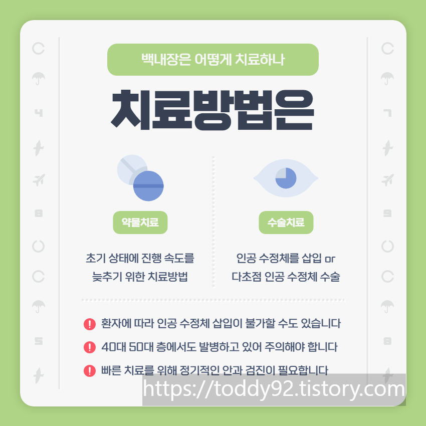 이와 같이 백내장은 노화와 관련된 눈의 건강 문제로, 주의를 기울이면 발병을 늦출 수 있습니다. 항상 건강에 유의하시고, 눈 건강에도 주의를 기울이시기 바랍니다.